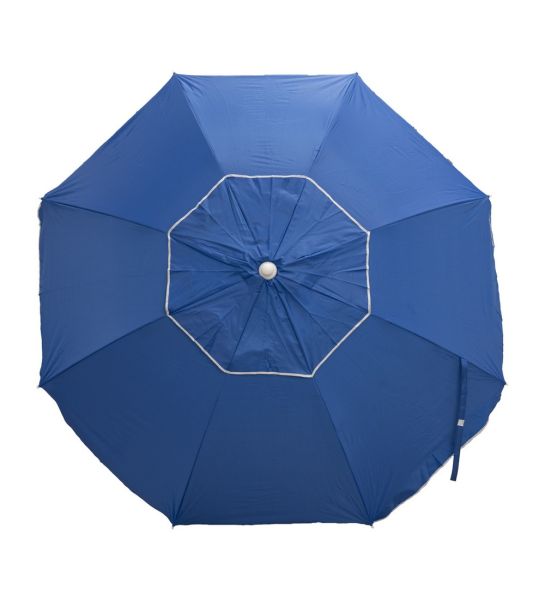Diseñada para ofrecer máxima estabilidad y frescura, esta sombrilla playera cuenta con salida de aire superior que reduce el efecto vela en días ventosos. Su lona aluminizada y estructura de acero la hacen perfecta para largas jornadas al sol.