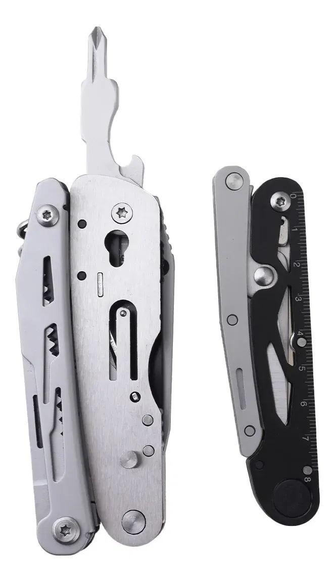Una multiherramienta versátil y resistente, pensada para quienes buscan rendimiento, portabilidad y durabilidad. Con 12 funciones integradas, hojas reemplazables y una presentación premium, es perfecta para aventuras outdoor, trabajos técnicos o uso diario.