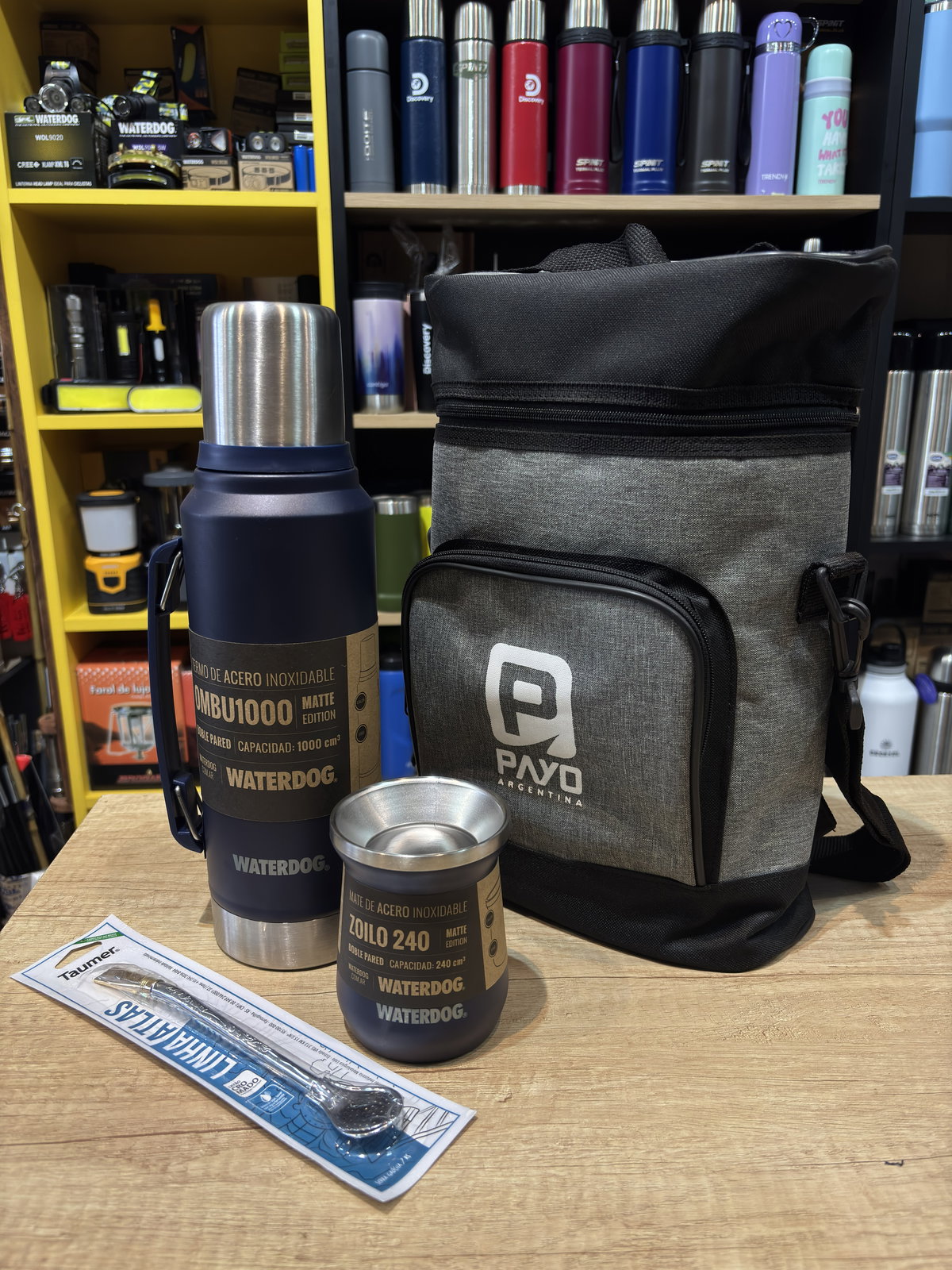 Quienes buscan un kit completo y elegante para llevar el mate a la oficina, viajes, camping o actividades al aire libre, con la garantía de Waterdog y el diseño funcional de Payo ARG.